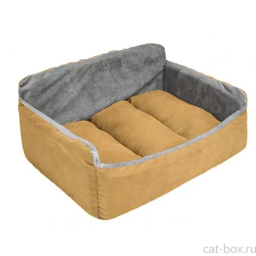 "Самсон" - бархат. Прямоугольный комфортный лежак, напоминающий диван, со строгими стенками (с поролоном внутри) и очень приятного на ощупь бархата и меха.
