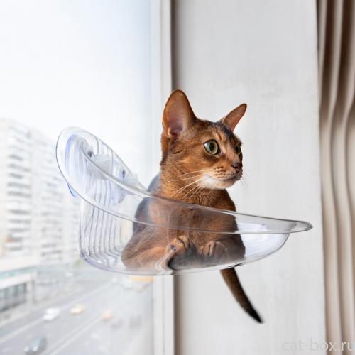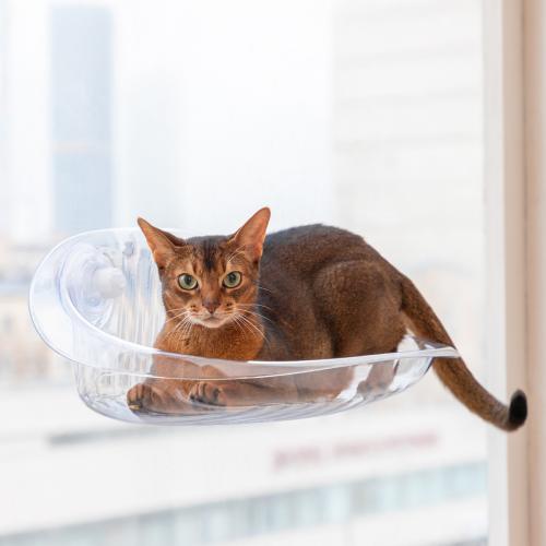 Гамак для кошек изготовлен из качественного прозрачного пластика и выдержит питомца весом до 10кг.