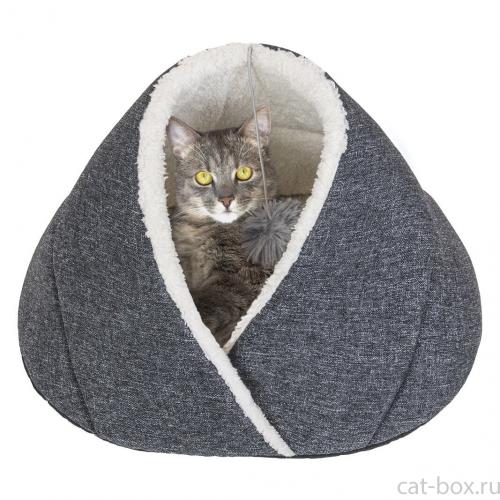ZooM Домик-лежак РИО с помпоном 35*46*35см (дерюжка, мех, поролон) серый