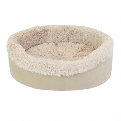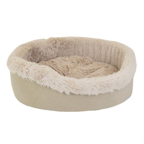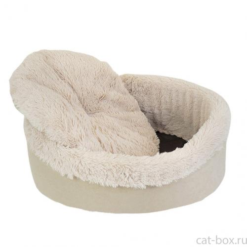 ZooM Лежак САВАННА овальный, пушистый мех, вельвет 65*55*h22см бежевый