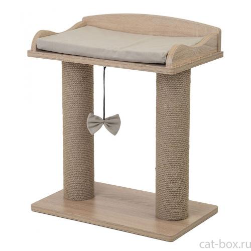 ZooM Когтеточка-лежанка ВИСКИ с двумя столбиками 45,5*27,5*h54см (ЛДСП, вельвет, джут) дуб сонома
