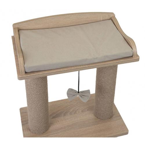 Оборудована двумя толстыми когтеточками, помпоном для игры и съемной вельветовой подушкой.