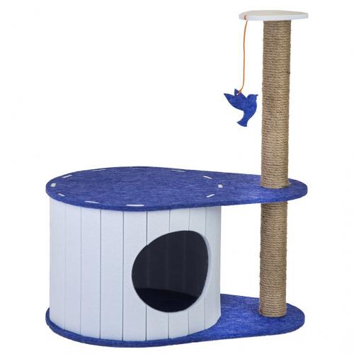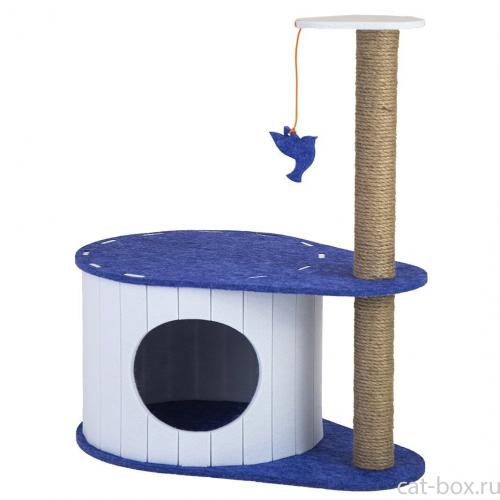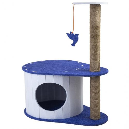 Дарэлл Домик-когтеточка ВОЙЛОК разборный со столбиком 50*33*h62см (войлок акустический, джут) сине-белый