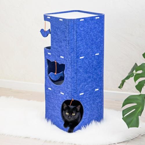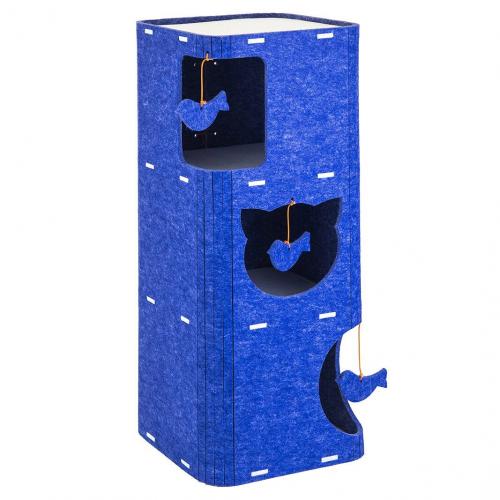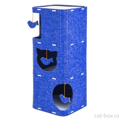 Дарэлл Домик-когтеточка КОЛОННА разборный серия Войлок 34х34хh79см (войлок акустический) сине-белая