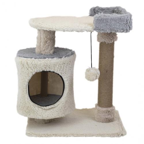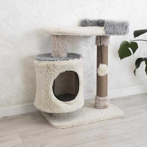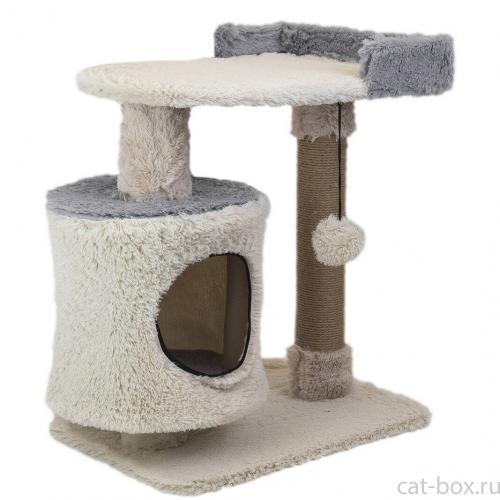 Дарэлл Домик-когтеточка ТАФФИ 3х-уровневый разборный 63*41*h76см (пушистый мех, джут) серый