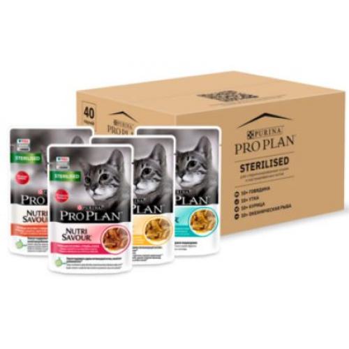 Purina Pro Plan Набор паучей для кастрированных кошек 40шт по 85г (говядина в соусе, курица в соусе, утка в соусе, океаническая рыба в соусе) 3.4кг
