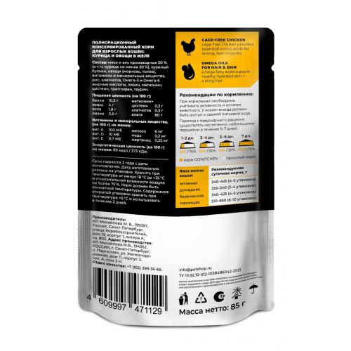 Go`Kitchen Паучи для взрослых кошек: курица и овощи в желе, полнорационный, HAIR&SKIN CARE ADULT Chicken in Jelly, 85г