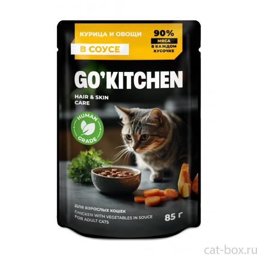 Go`Kitchen Паучи для взрослых кошек: курица и овощи в соусе, полнорационный, HAIR&SKIN CARE ADULT Chicken in Souce, 85г