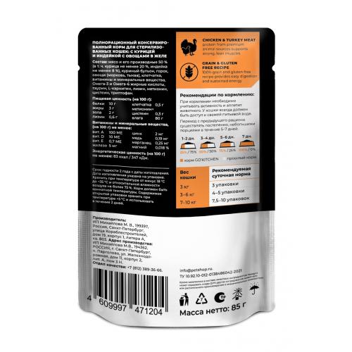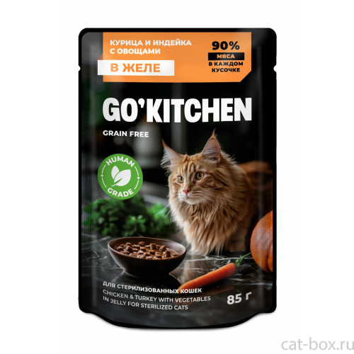 Go`Kitchen Паучи для стерилизованных кошек: с курицей и индейкой с овощами в желе Sterilised GRAIN FREE Chiken & Turkey in Jelly, 85г
