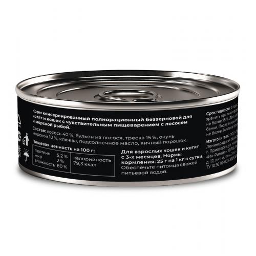 Go`Kitchen Корм консервированный полнорационный беззерновой для котят и кошек с чувствительным пищеварением с лососем и морской рыбой, 0.1кг