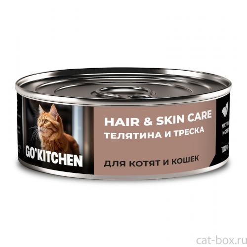 Полнорационные консервы для взрослых кошек и котят с телятиной и треской HAIR&SKIN CARE Veal&CodFish помогут сохранить здоровье кожи и красоту шерсти питомца.