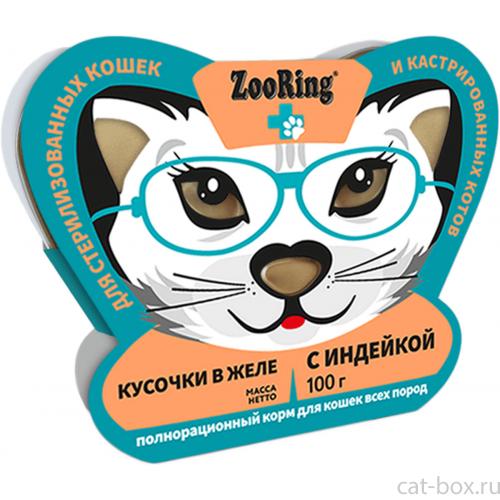 ZooRing Консервы для стерилизованных кошек Кусочки в желе с Индейкой, 100г