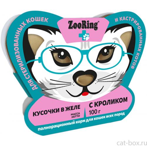 ZooRing Консервы для стерилизованных кошек Кусочки в желе с Кроликом, 100г