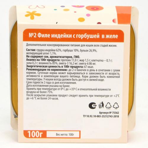 Дополнительное питание для кошек всех стадий жизни из отборного филе индейки с горбушей в аппетитном желе.