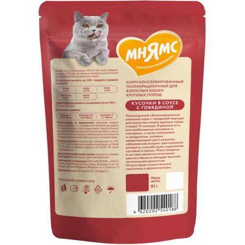 Мнямс Кусочки в соусе с говядиной для крупных кошек пауч, 85г