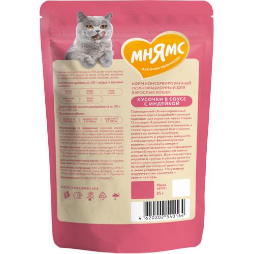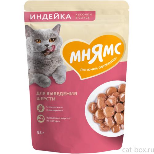 Мнямс Кусочки в соусе с индейкой для выведения шерсти у кошек пауч, 85г