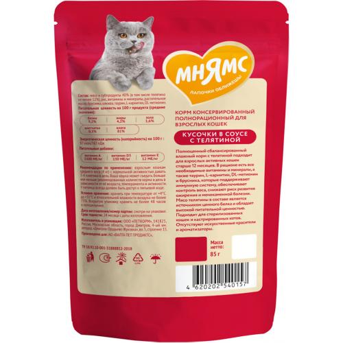 Мнямс Кусочки в соусе с телятиной для активных кошек пауч, 85г