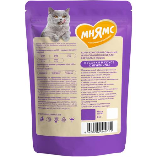 Мнямс Кусочки в соусе с ягненком для комфортного пищеварения у кошек пауч, 85г