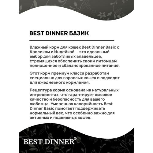 Best Dinner Паучи БАЗИС для взрослых кошек кусочки в соусе с Кроликом и индейкой, 75г