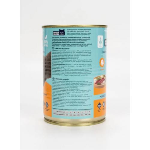 Ночной охотник Консервы Adult для взрослых привередливых кошек Мясное ассорти в желе, 415г