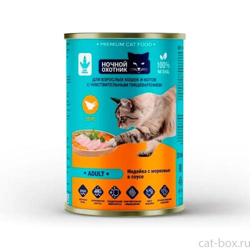 Ночной охотник Консервы Adult для кошек с чувствительным пищеварением Индейка с морковью в соусе, 415г