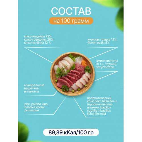 Настоящие любители деликатесов непременно оценят богатство оттенков вкуса, отражающего лучшие сорта натуральных сортов мяса. Высокая концентрация биологически активных компонентов гарантирует достаточный уровень необходимой энергии, прочности костно-мышечной структуры и гладкой эластичной шерсти. Уникальность рецептуры позволяет сочетать разные виды мяса и создать особенную палитру вкуса.