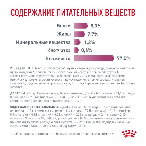 Особый ароматический профиль и специально разработанная текстура помогают стимулировать аппетит кошки, особенно в случаях отвращения к корму.