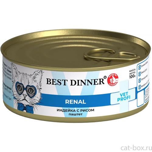 Best Dinner Консервы для кошек при заболевании почек Renal Индейка с рисом, 100г