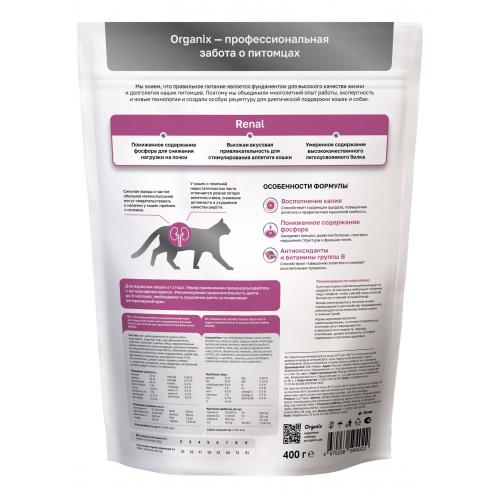 Organix Veterinary Сухой корм для взрослых кошек RENAL для поддержания функции почек при острой или хронической болезни почек, 0.4кг