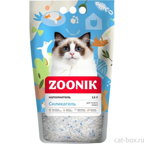 Наполнитель для кошачьего туалета "Зооник" силикагелевый обладает высоким влагопоглощением и полностью нейтрализует запах.