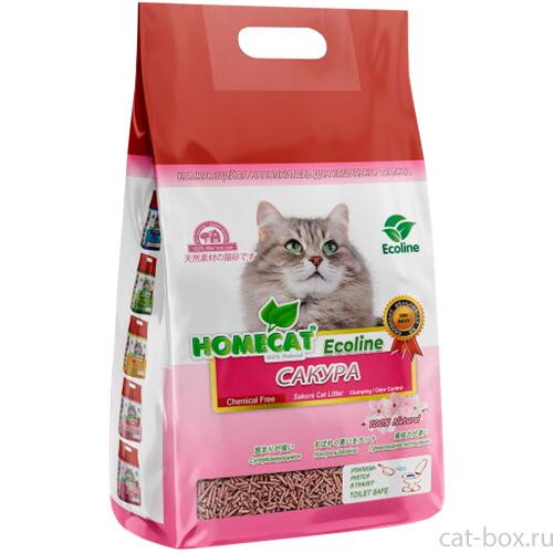 Экологически чистый комкующийся наполнитель HOMECAT ЭКОЛАЙН САКУРА с повышенной способностью водопоглощения и блокировки запаха.