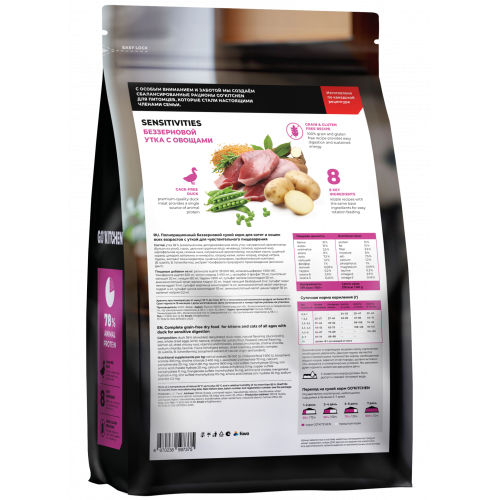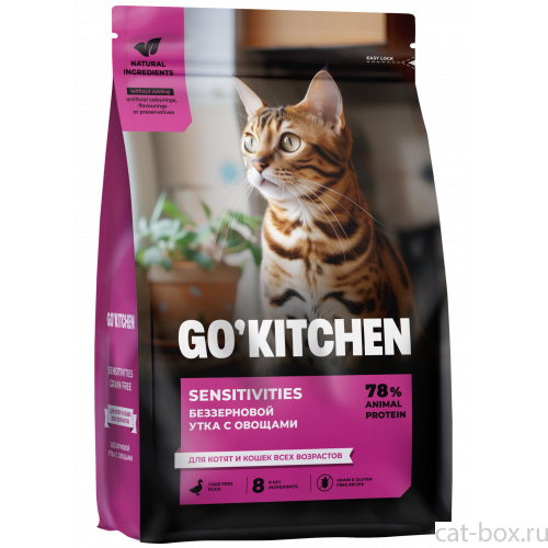 Go`Kitchen Беззерновой корм для котят и кошек всех возрастов с уткой для чувствительного пищеварения, SENSITIVITIES Duck, 0.4кг