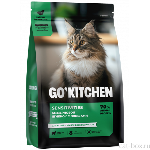 Go`Kitchen Беззерновой корм для котят и кошек всех возрастов с ягнёнком для чувствительного пищеварения, SENSITIVITIES Lamb, 0.4кг