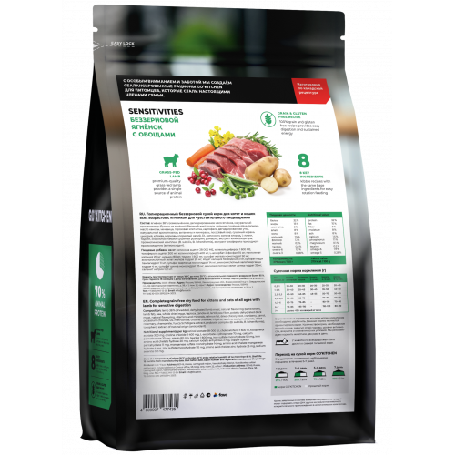 GO'KITCHEN SENSITIVITIES Lamb - беззерновой корм, разработанный специально для котят и кошек с чувствительным пищеварением.