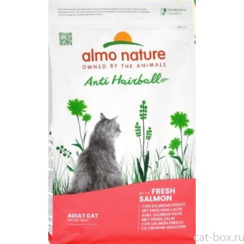 Almo_Nature Полнорационный сухой корм для взрослых кошек со свежим лососем. Hairball, Fresh Salmon, 0.4кг