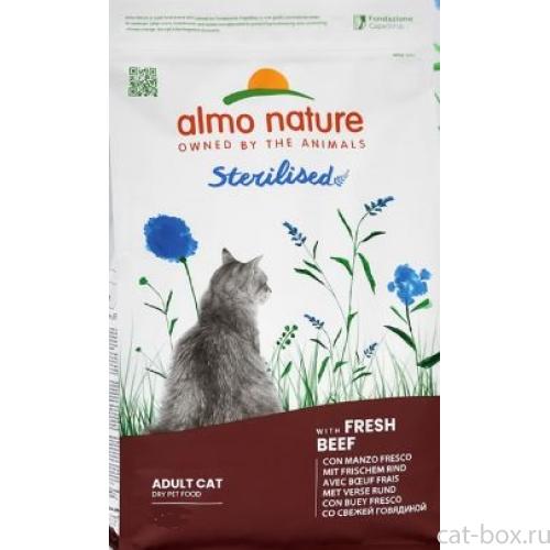 Almo_Nature Полнорационный сухой корм для стерилизованных кошек со cвежей говядиной и коричневым рисом. Sterilised, Fresh Beef, 0.4кг