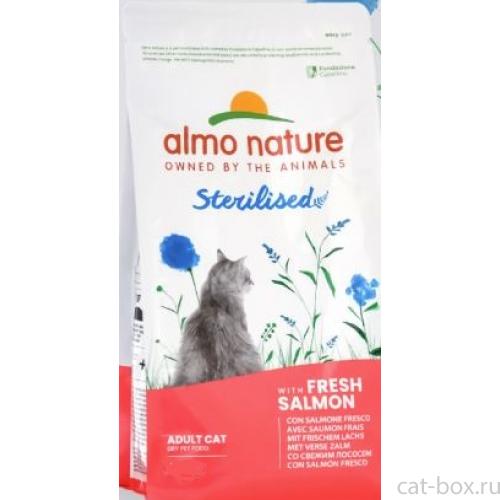 Almo_Nature Полнорационный сухой корм для стерилизованных кошек со свежим лососем и коричневым рисом. Sterilised, Fresh Salmon, 0.4кг