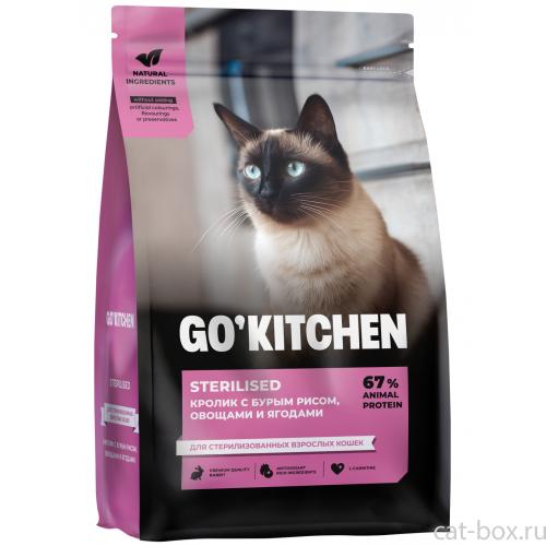 Go`Kitchen Сухой корм для стерилизованных взрослых кошек с кроликом, бурым рисом, овощами и ягодами, STERILISED Rabbit, 0.4кг