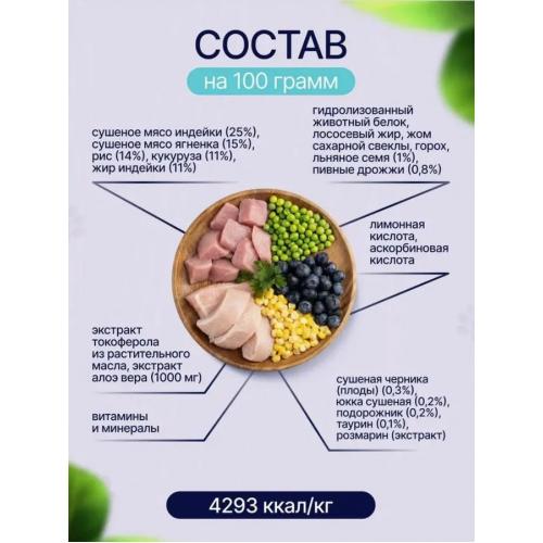 Премиальный продукт, разработанный для полноценного питания самых уязвимых категорий питомцев. Основа рациона — сушёное мясо индейки и ягнёнка: высокий уровень белка и минимум потенциальных аллергенов.