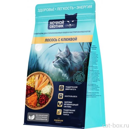 Ночной охотник Сухой корм для стерилизованных кошек Лосось с клюквой, 0,4кг