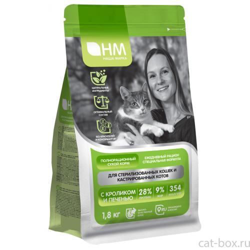 Наша Марка Сухой корм для стерилизованных кошек и кастрированных котов с кроликом и печенью, 1.8кг