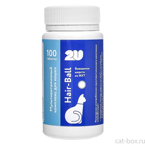 2U Мультивитаминный комплекс для кошек, выведение комков шерсти Hair-Ball, 100таб.